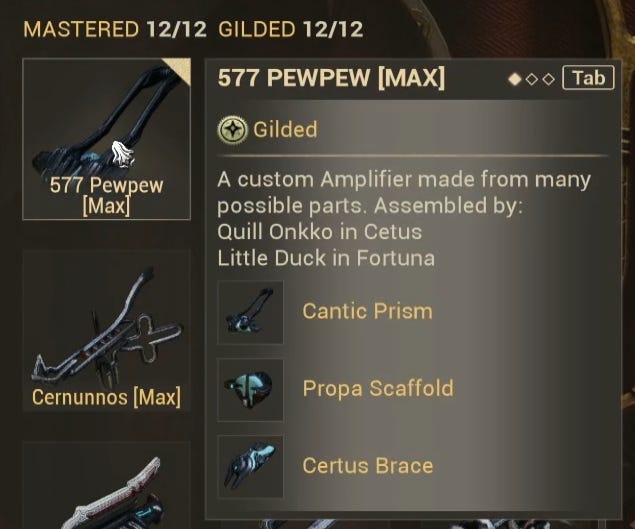 For the operator, we're using a 577 amp. Cantic Prism, Propa Scaffold, and Certus Brace. But if you're not quite maxed with Vox Solaris yet, you can also use a Klebrik, Lohrin, and Rahn amp, all of which are available in Onkko's shop. Of course, you can use the 777 Klamora, Propa, and Certus because that's the Meta but for me, I like the 577 so we'll be using that for the video.