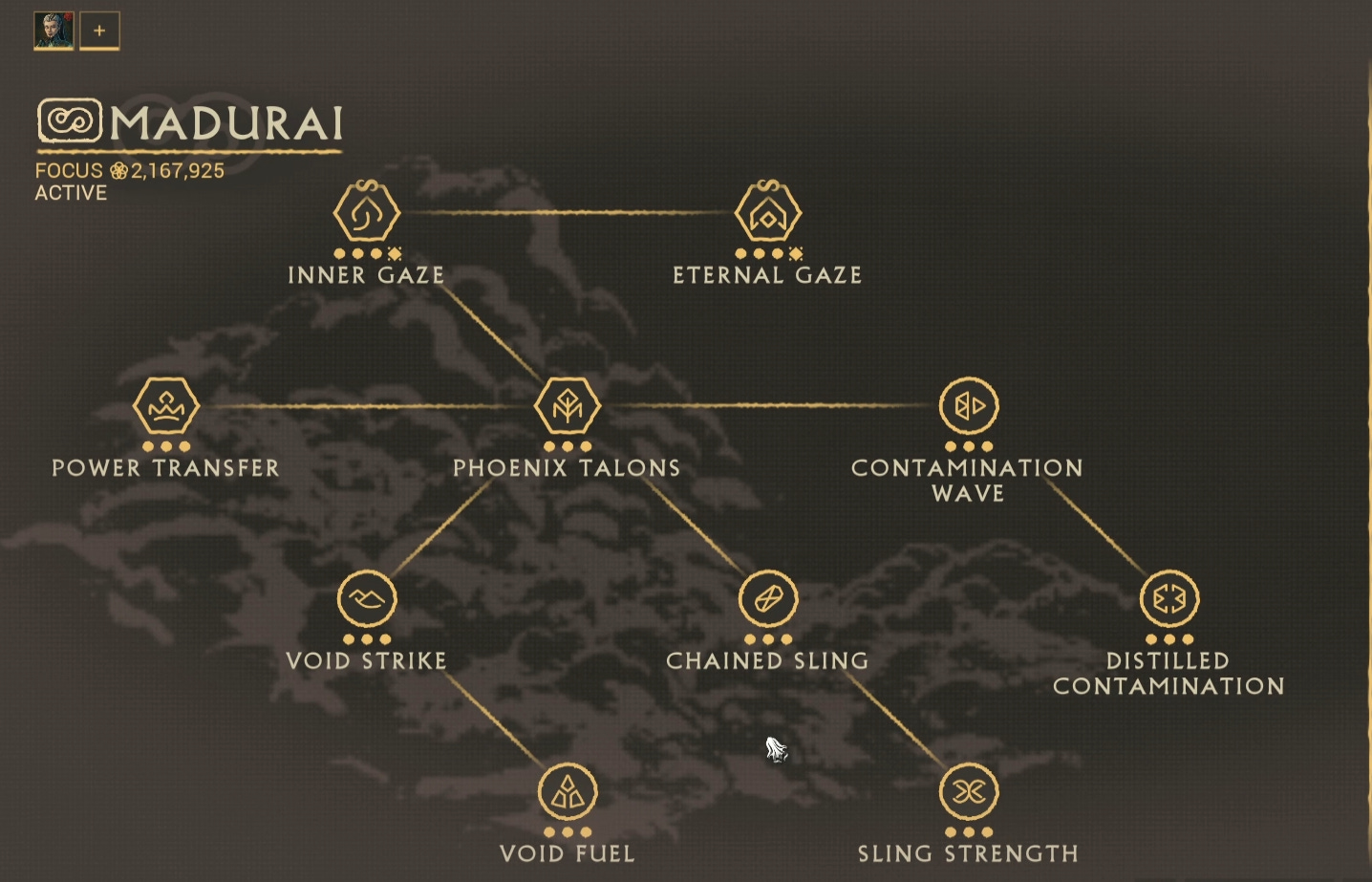 For the school, we will use Madurai for its abilities. We'll use Void Strike and Contamination Wave. Void Strike consumes all Energy and gives you bonus damage per energy consumed which stacks on our Eternal Onslaught's crit buff. Contamination Wave buffs our damage when it touches the Eidolon's weak points. so Juggling these two during the run is crucial.